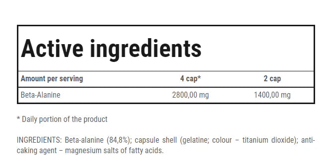 Beta-Alanine 700mg is a high-quality dietary supplement designed for athletes across all sports disciplines, both aerobic and anaerobic. It provides a potent 700mg dose of Beta-Alanine per serving, helping to enhance performance during intense training sessions.