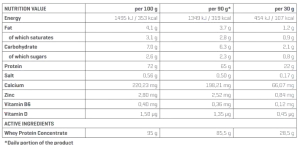 Here’s a summary of the TREC NUTRITION WHEY 100 – New Formula: